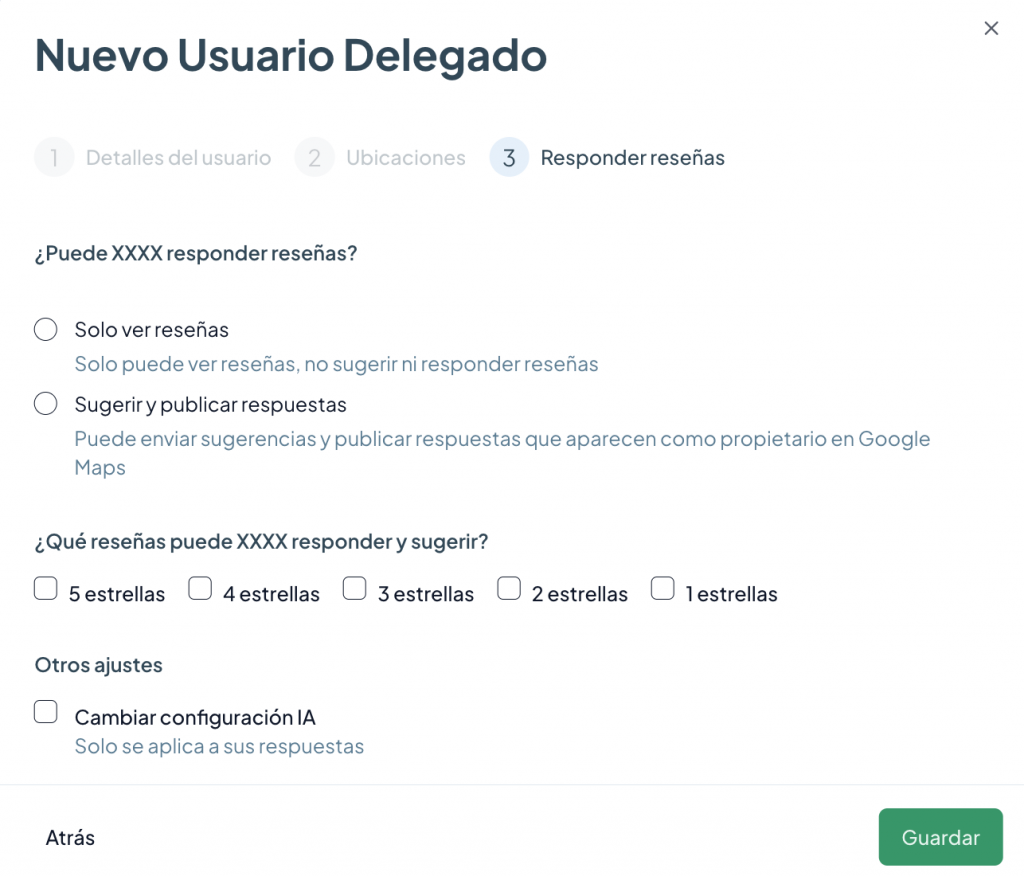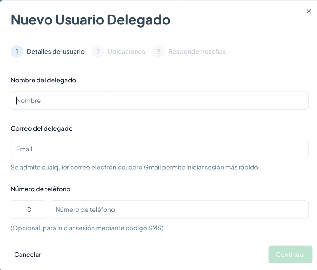 3. Rellena toda la información y dale a «Guardar». El correo electrónico es obligatorio, aunque el usuario delegado utilice el número de teléfono para acceder.